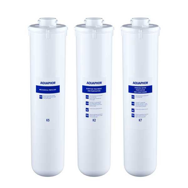Комплект модулей Аквафор К5-К2-К7 подходит для фильтра Аквафор Кристалл и используется для очистки холодной воды