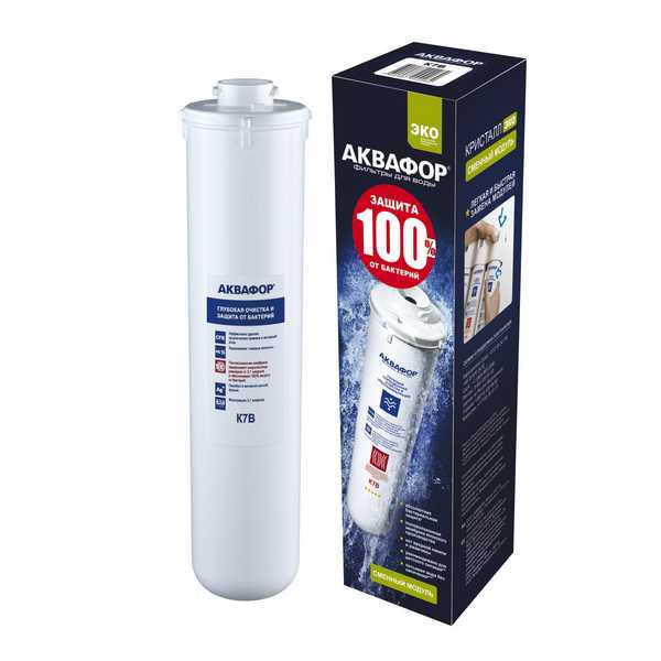 Аквафор К7В тщательно устраняет все вредные примеси, особенно хлор, тяжелые металлы, органические вещества и бактерии. Используется для финишной очистки мягкой питьевой воды и ее обеззараживания с помощью ионообменного волокна.