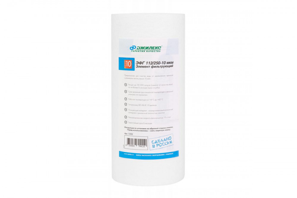 Картридж ЭФГ 112/250 изготовлен из вспененного полипропилена, предназначен для очистки холодной воды от песка, грязи, окалины, ржавчины и других нерастворимых примесей. Глубинная структура элемента с переменной пористостью предотвращает "заиливание" поверхности, повышает грязеемкость, продлевая ресурс работы. Волокна внутреннего слоя элемента прочно скреплены между собой термически, что предотвращает их расслоение и выброс в очищенную воду.