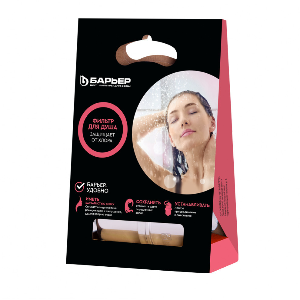 Фильтр БАРЬЕР Бьюти удаляет вредные примеси хлора в воде во время принятия душа. Предотвращает возникновение аллергических реакций и шелушение кожи.