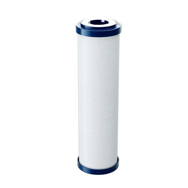 Сменный фильтрующий модуль представляет собой карбон-блок, полученный на основе смеси активированного гранулированного угля и хелатного ионообменного волокна Аквален. Благодаря гидрофильной способности и развитой поверхности Аквалена сменный картридж В510-02 позволяет очистить большее количество воды от активного хлора, фенола, бензола, пестицидов, хлороформ, металлов.