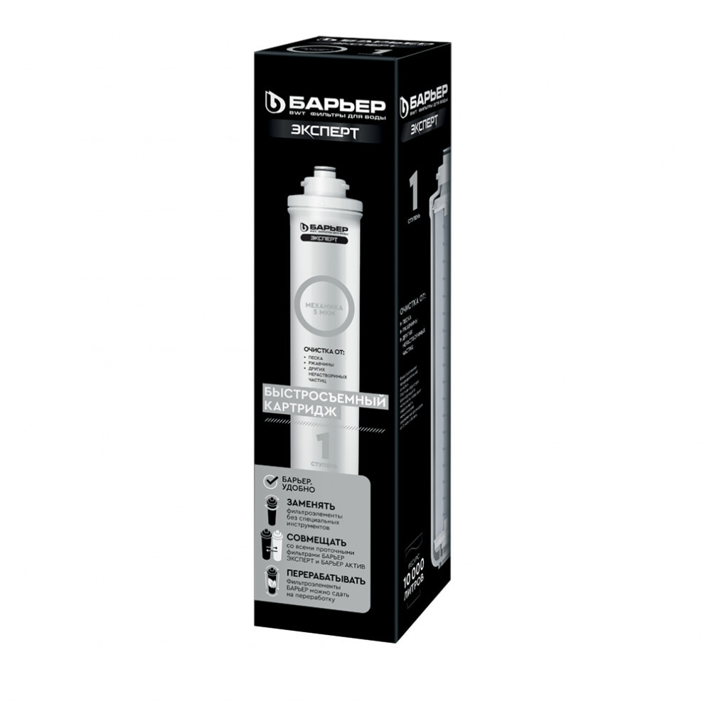 Картридж EXPERT Механика Барьер устанавливается в первую ступень трехступенчатых проточных фильтров БАРЬЕР ЭКСПЕРТ для очистки холодной воды.