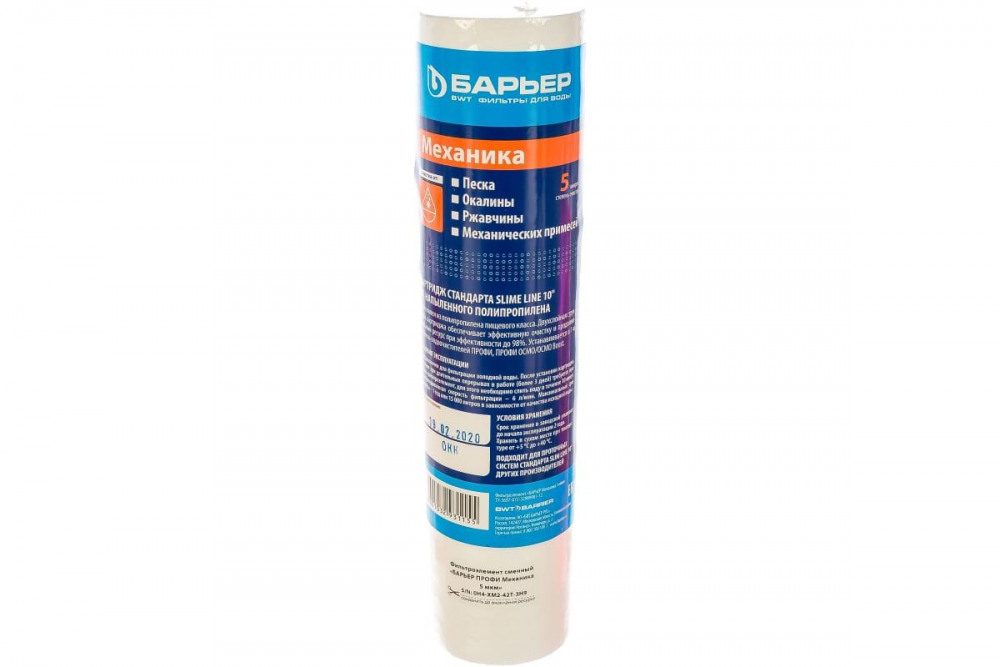 Картридж ПРОФИ Механика 5мкм в пленке Барьер применяется в фильтрах Барьер для очистки холодной воды. Картридж состоит из полипропилена пищевого класса.