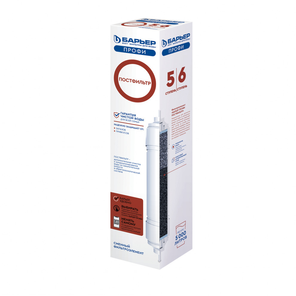 Картридж Барьер ПРОФИ Постфильтр 5-я ступень входит в систему для очистки воды методом обратного осмоса Профи Осмо и кондиционирует воду после прохождения накопительной емкости. В итоге вы получаете воду для питья и приготовления пищи, которая не уступает по своим характеристикам бутилированной.