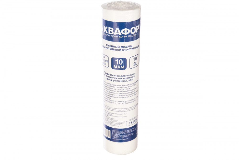 Сменный модуль для предочистки холодной воды. Используется в корпусах предфильтров Гросс 10, а также подходит ко всем стандартным корпусам фильтров 10"BB. Изготовлен из 100%-го полипропилена. Градиентная структура с переменной пористостью повышает "грязеемкость", увеличивает ресурс. Пористость фильтрующего материала - 10 мкм. Максимальная рабочая температура воды +38°C. Рекомендуемая частота замены модуля - при падении производительности в 3-4 раза, но не реже одного раза в полгода