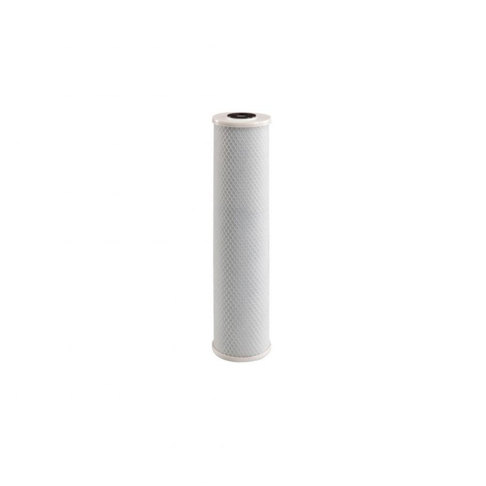 Сорбционный картридж из прессованного активированного угля. Очищает воду от широкого спектра органических и неорганических растворенных примесей (свободного хлора, хлорорганических соединений, пестицидов, нефтепродуктов, тяжелых металлов, иных органических и неорганических соединений), устраняет неприятный запах воды, улучшает ее вкус.